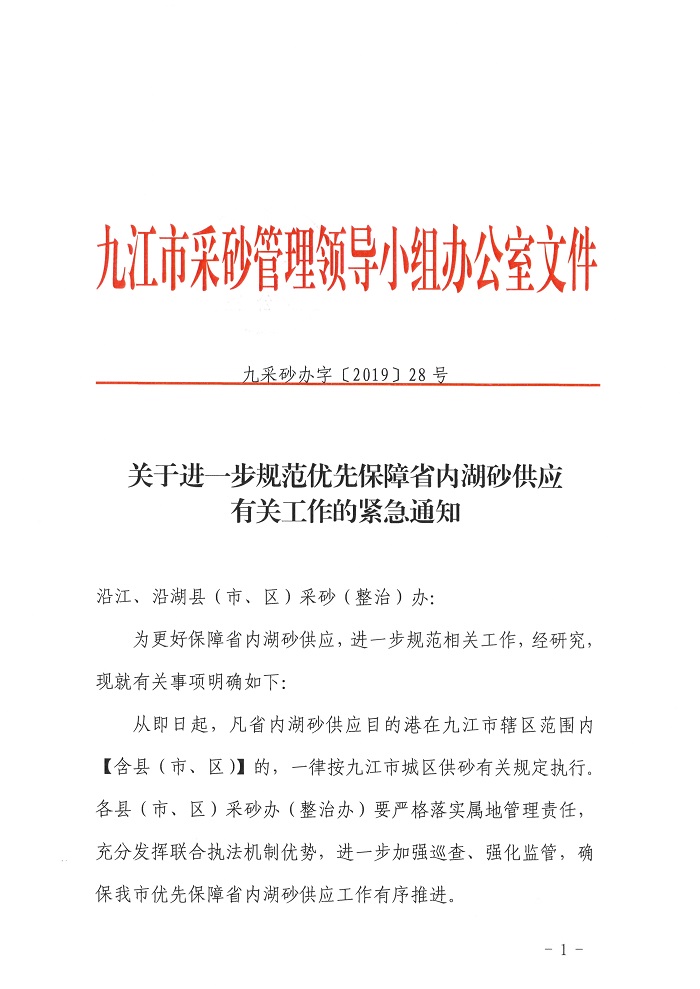 關(guān)于進(jìn)一步規(guī)范優(yōu)先保障省內(nèi)湖砂供應(yīng)有關(guān)工作的緊急通知